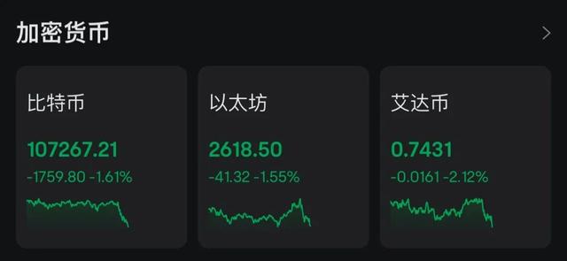 数字货币市场也明显跳水。截至发稿,比特币、以太坊均跌超1%。