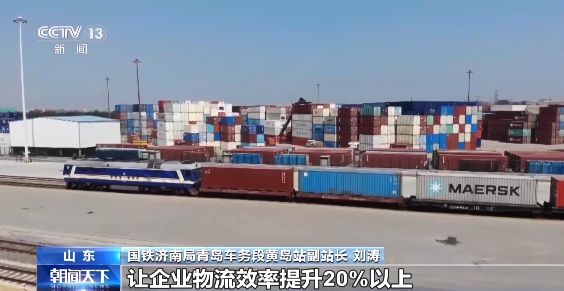 国铁济南局青岛车务段黄岛站副站长 刘涛:港站间80公里运距的集装箱实现当日周转,让企业物流效率提升20%以上、成本降低15%。